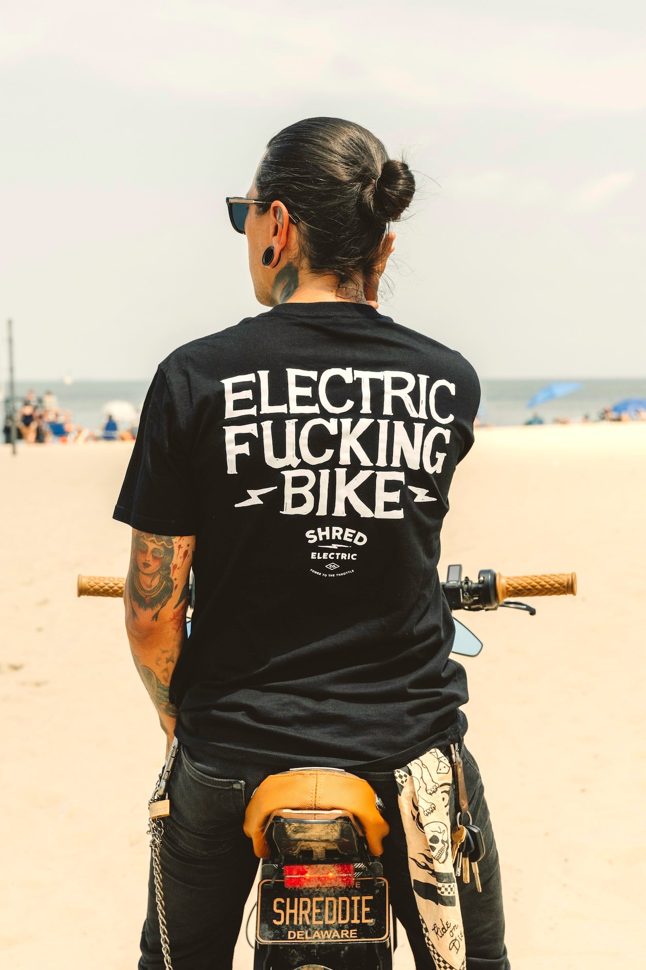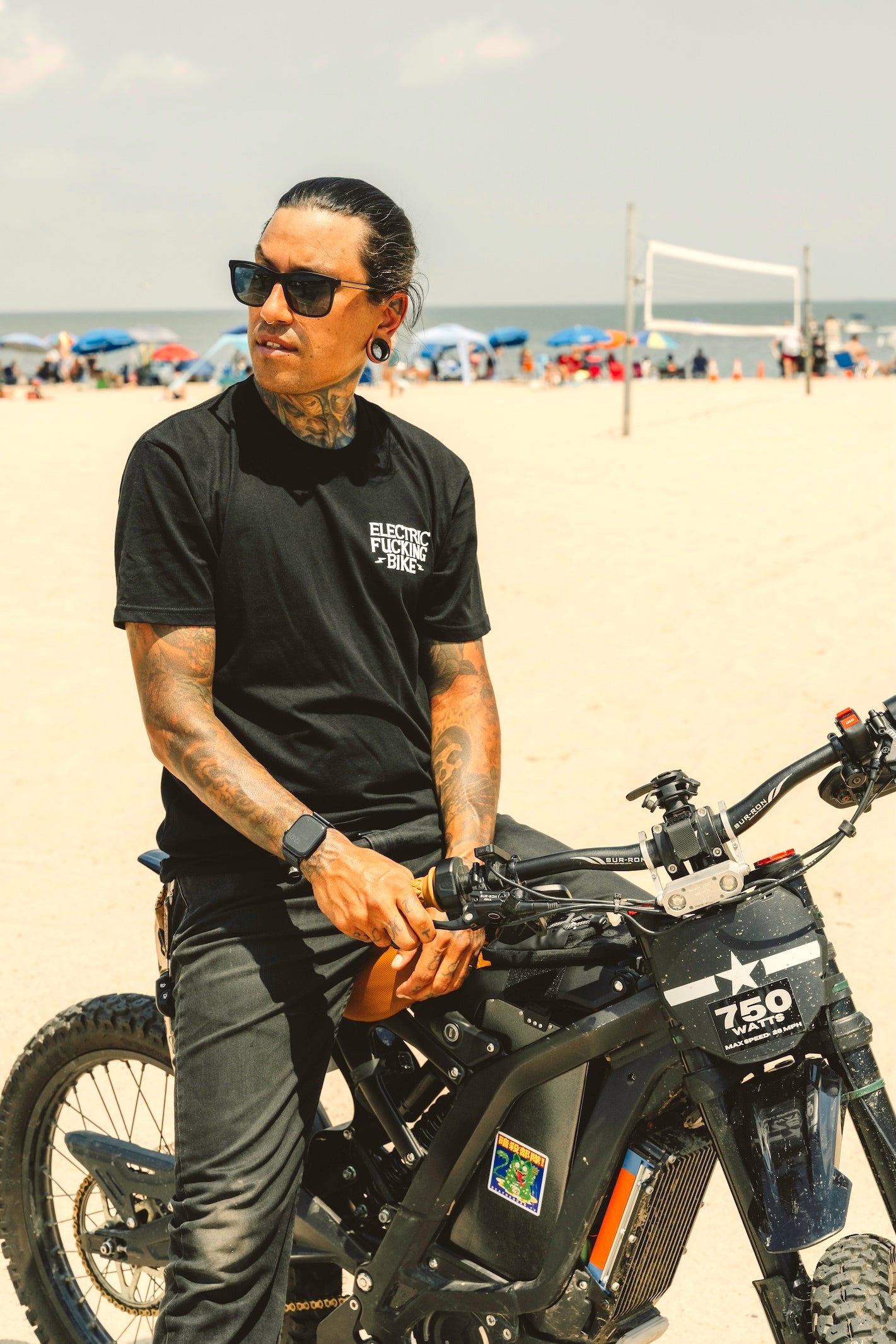 Hand-drawn design that captures the bold, fearless and raw energy and excitement of electric bike riding.