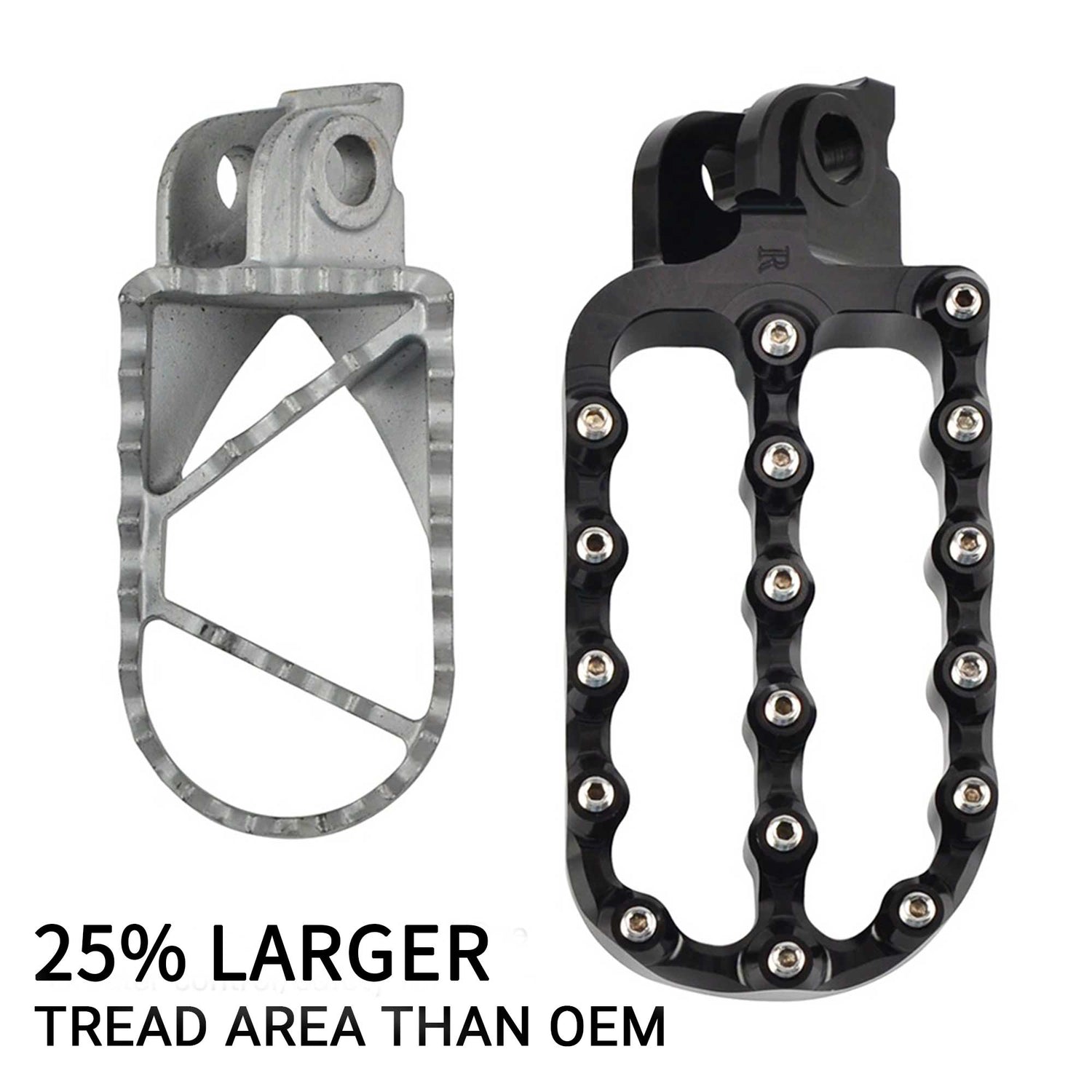 Conquer rugged trails and diverse terrains with Rippin Moto’s ADV XW Footpegs, engineered to elevate the KTM Adventure riding experience. Designed with a 25% larger tread area compared to OEM pegs, these footpegs deliver unmatched comfort and control, giving you the support and stability needed for long rides and challenging paths. Perfect for all-weather adventures, the tapered profile efficiently sheds snow, ice, and mud, ensuring that your footing remains secure no matter the conditions.