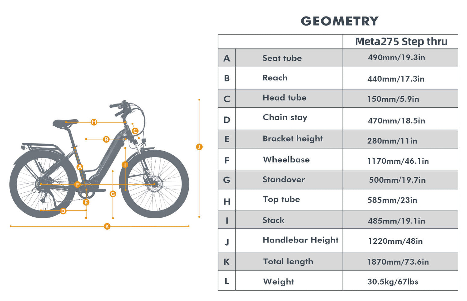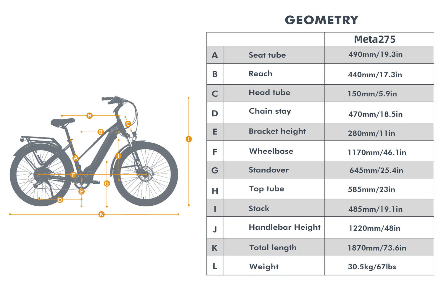 The 27.5" City Model Meta275 E-Bike Specifications